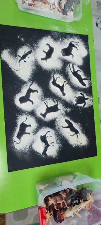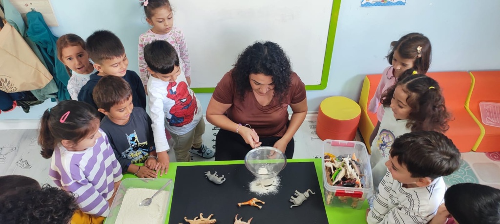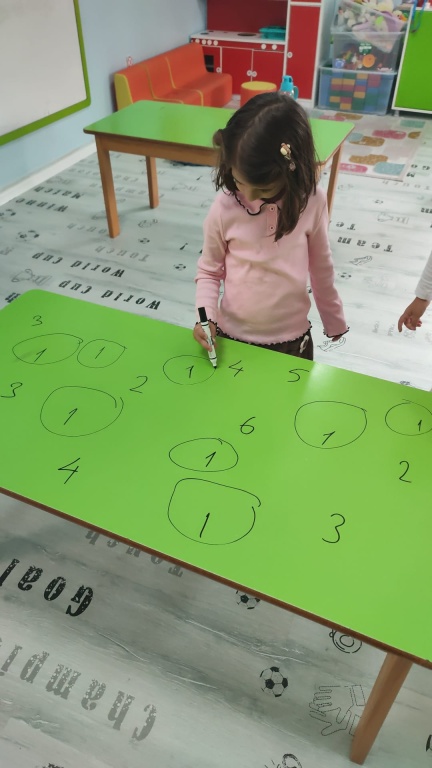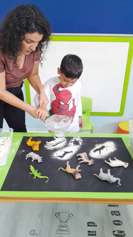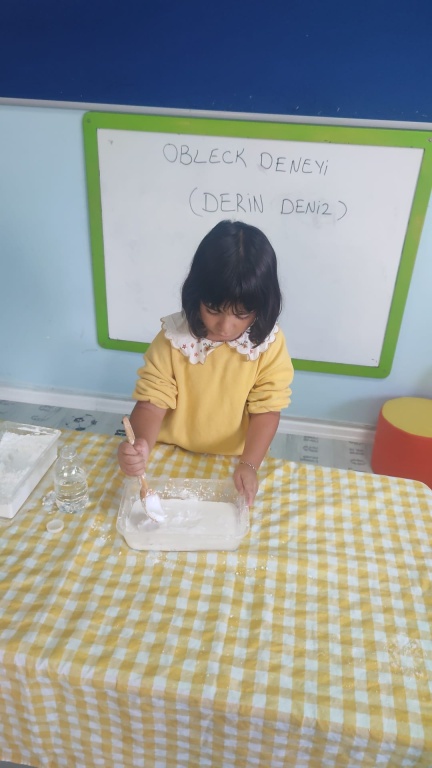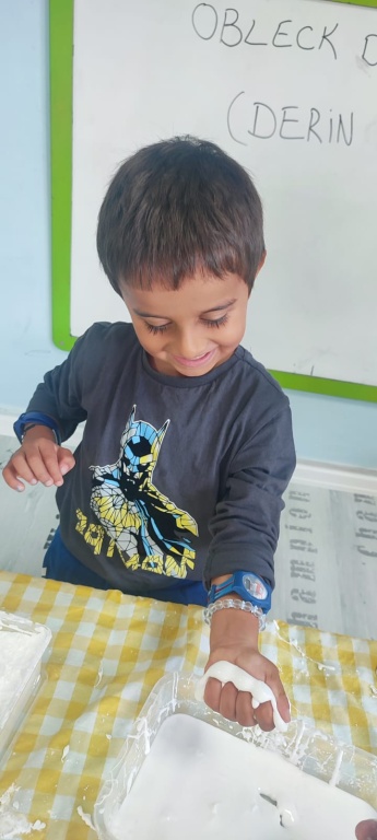 5 yaş A şubesi Menekşeler sınıfı öğrencileri hayvanların gölgelerini çıkararak hayal güçlerini geliştiren, neden-sonuç ilişkisi kurmalarını destekleyen bir etkinlikte keyifli vakit geçirdi. Aynı zamanda Derin Deniz arkadaşlarına obleck deneyini sundu ve hep birlikte obleck hamurunun katı ve sıvı hallerini incelediler. Günün sonunda Menekşeler sınıfı 1 sayısını oyunlarla tekrar ederek pekiştirdi.