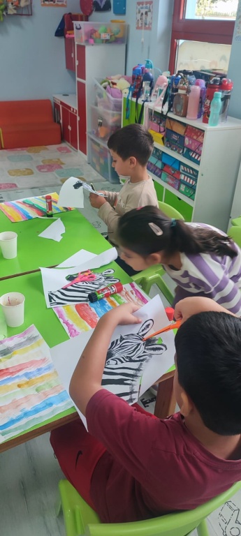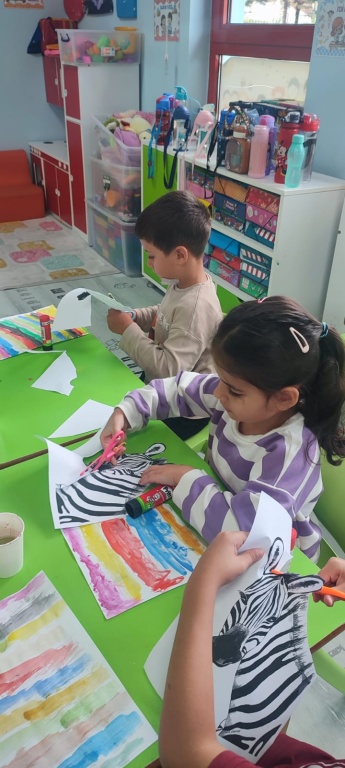 4 yaş F şubesi Uğur Böcekleri sınıfı “Dev Pancar Çılgınlığı” hikâyesini dinleyip sanat etkinliği yaptı, ardından hayvan desenlerini eşleştirme ve kodlama oyunları oynadı.